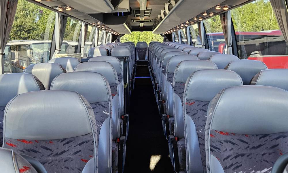 Nasze autokary są przestronne, w pełni sprawne technicznie, zadbane i czyste, co gwarantuje wygodę i komfort podróży zarówno podczas krótkich transferów, jak i długich tras międzynarodowych. Komfort pasażerów, bezpieczeństwo i pełne zadowolenie z podróży są dla nas zawsze priorytetem!